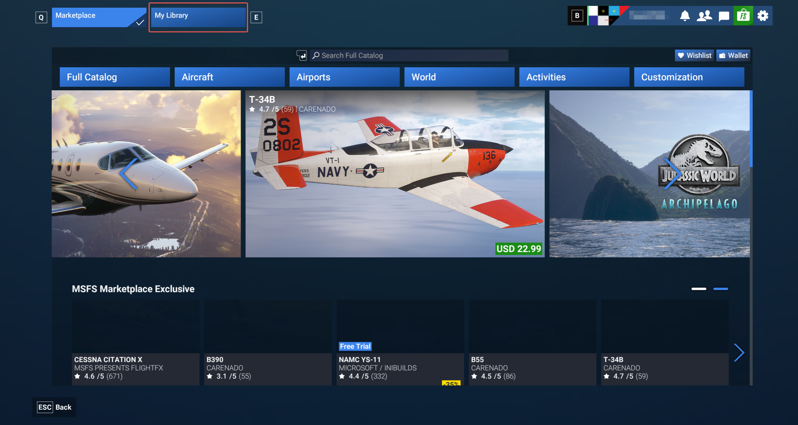 - From the Microsoft Flight Simulator main menu, select Marketplace from the button options.